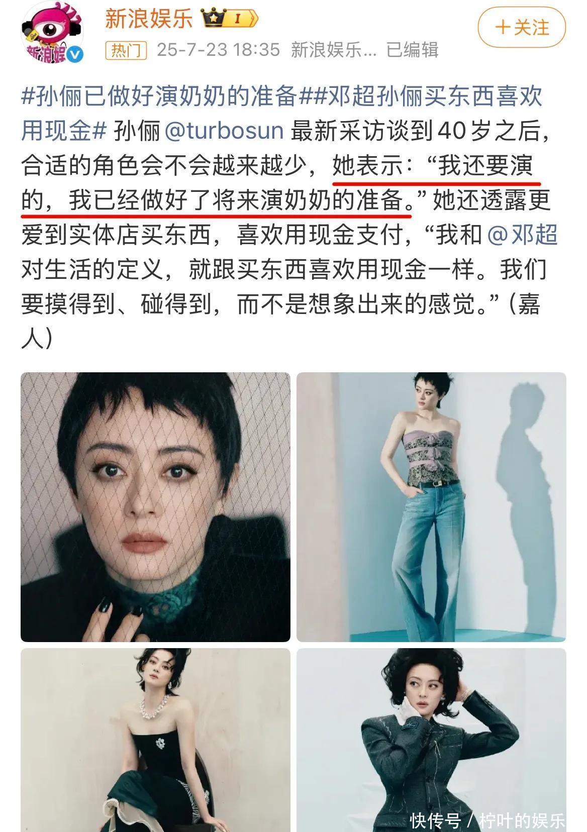 相较一些女演员的想不清楚,纠结所谓的中年困境,孙俪早就捋得明明白白,知道要什么,弃什么。坦然的接受变老,不用观众去监督,年龄再长一些,会主动接演奶奶一类的角色。